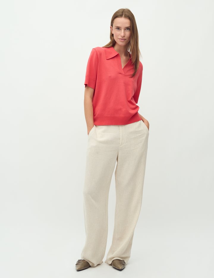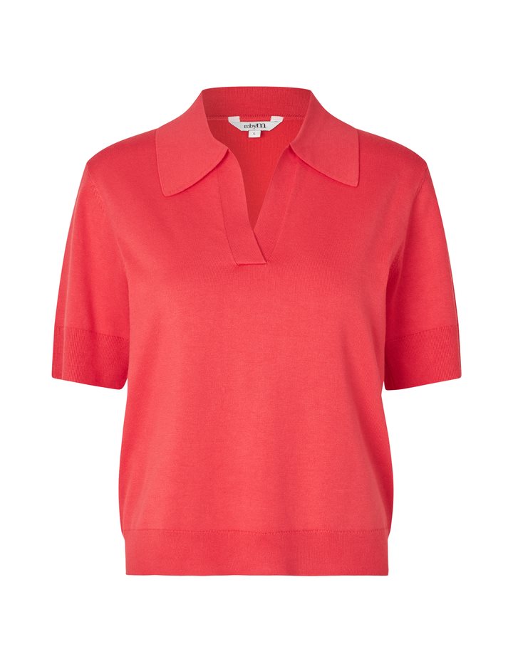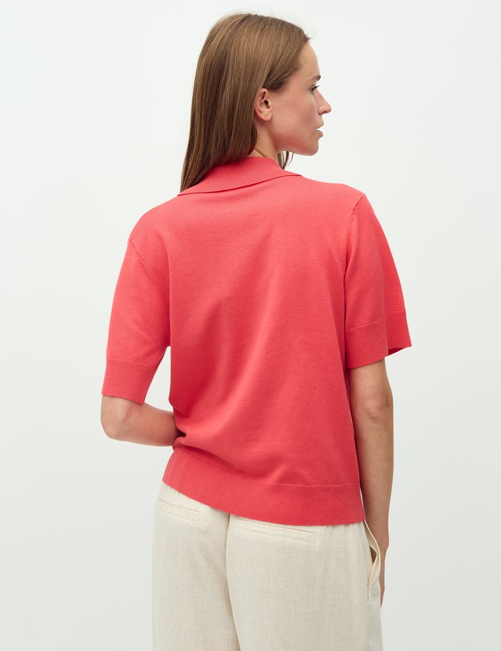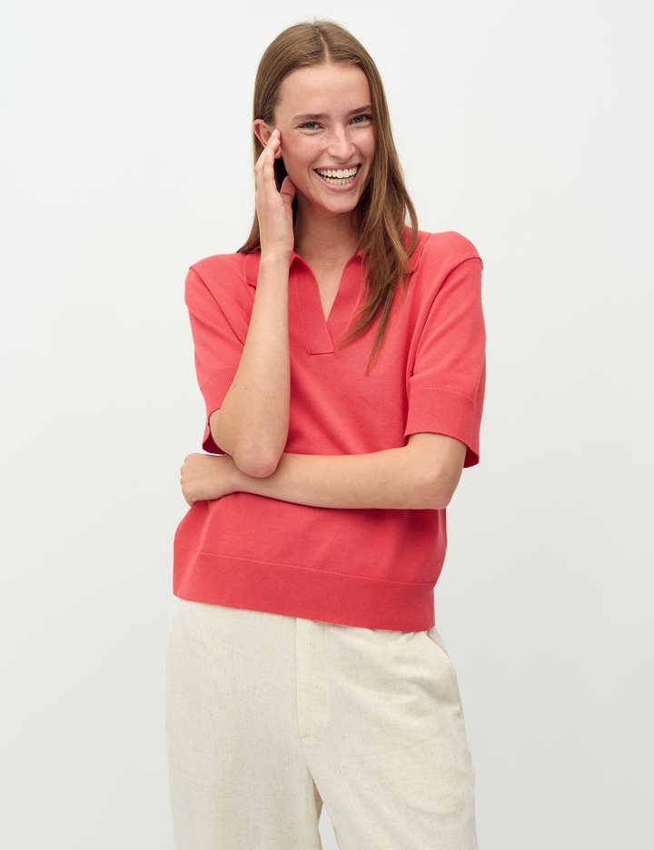 Polo in a soft knit quality.- Material: 70% Viscose, 30% Polyester- Loose fit- Polo collar- Short sleeves- Soft knit qualityThe model's height is 176 cm and she is wearing a size S.