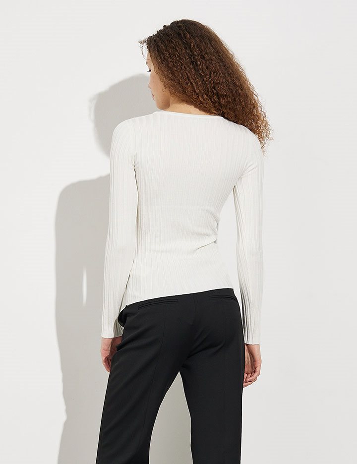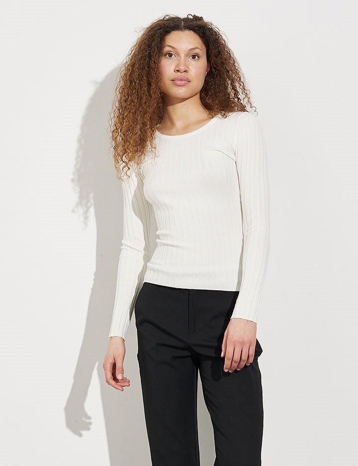 Tight-fitting knit in rib quality- Material: 40% Viscose, 40% Acrylic, 18% Nylon, 2% Elastane- Long sleeves- Round neck- Tight-fitting- Rib quality- Color: SugarThe height of the model is 178 cm and wearing a size S