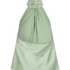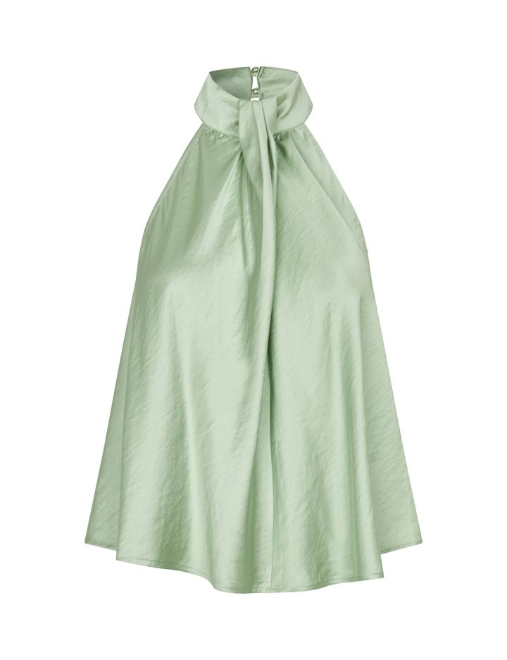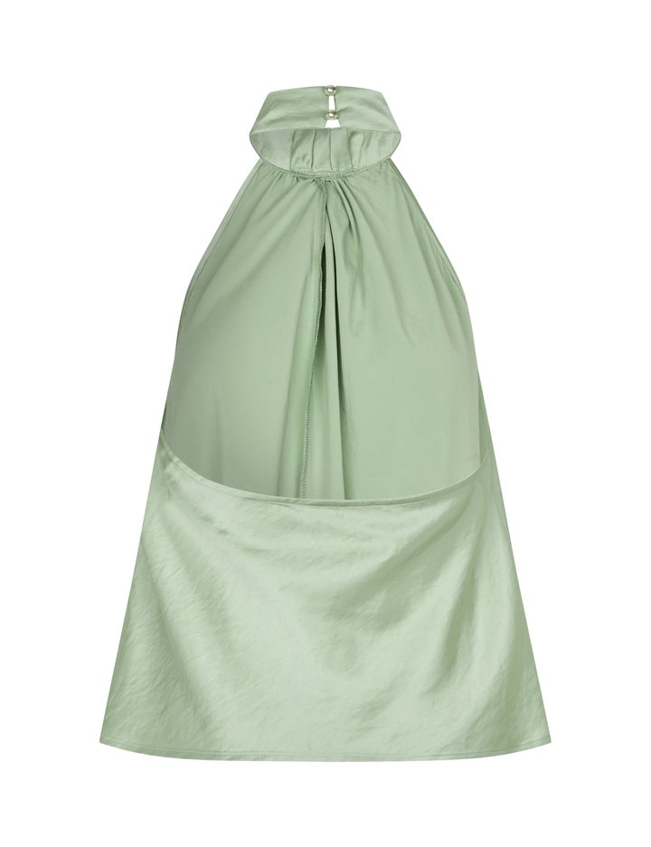 Top with knot detail at the neck.- Material: 54% Polyester, 46% Viscose- Without sleeves- Loose fit- Knot detail at the neck- Closes with buttons at the neck- Low back- Normal length- Satin quality